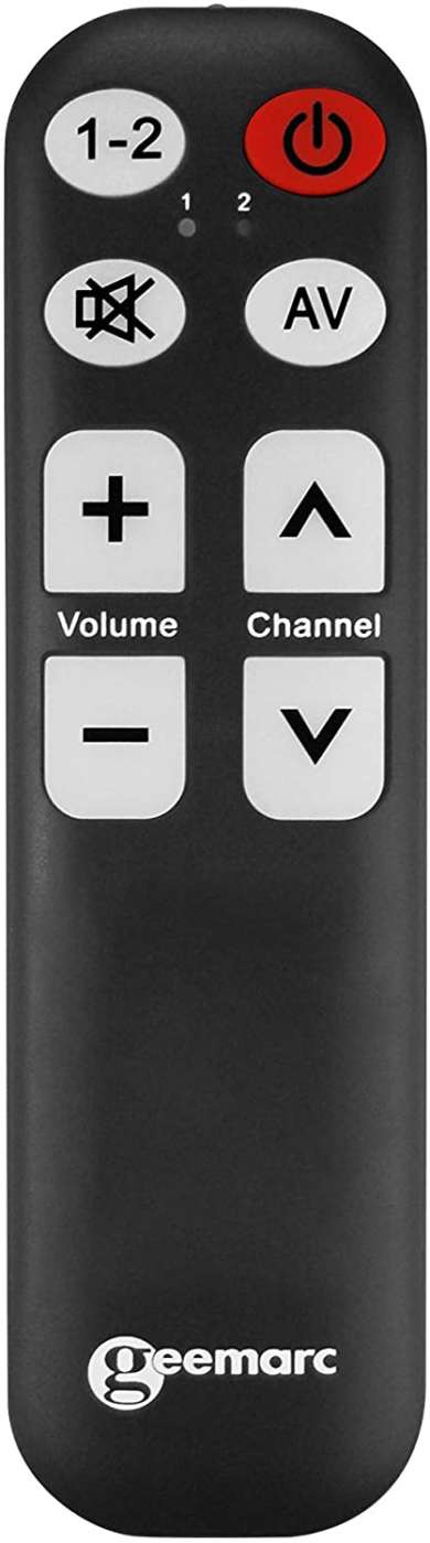 La forma ergonomica che facilita l’impugnatura e i soli 6 tasti programmabili rendono il Geemarc TV5 la soluzione ideale per bambini e anziani. Ogni singolo tasto può essere programmato facilmente dai telecomandi originali di Tv, decoder, audio, ecc. Il tasto 1-2 serve a programmare lo stesso comando (es.: canale +/-) di due diversi telecomandi (es.: Tv e decoder). L’assenza dei tasti per l’accesso e la navigazione nel menu impedisce modifiche accidentali alle apparecchiature e alle liste canali.