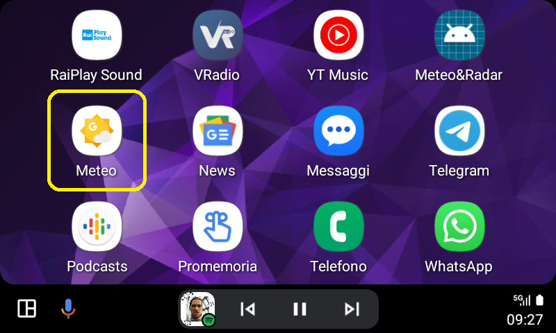 Se possedete uno smartphone Android potete ritrovare alcune delle funzioni viste sopra sul vostro infotainment con Android Auto così da rimanere sempre aggiornati sulle condizioni meteo della zona in cui vi trovate, lungo il percorso di un viaggio o della destinazione.
