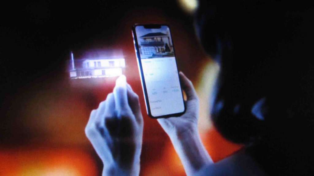 Il display olografico mostra fluttuanti gli oggetti 3D estratti dalla libreria dei dati scansionati dal telefono.