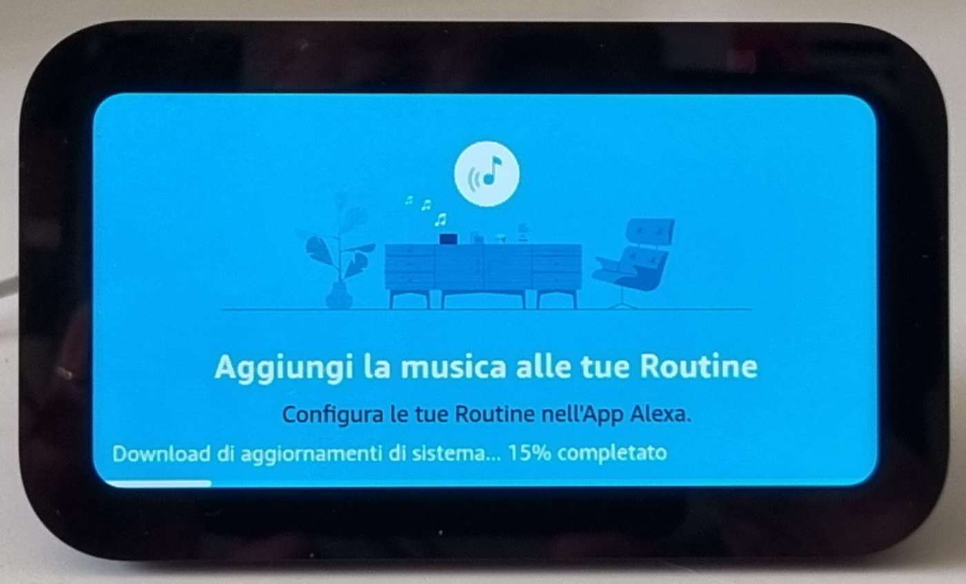 Basta collegare l’alimentatore ad una presa di corrente 220Vac e allo smart display, selezionare la lingua e la rete Wi-Fi, inserire i dati dell’account Amazon e seguire le istruzioni a video.