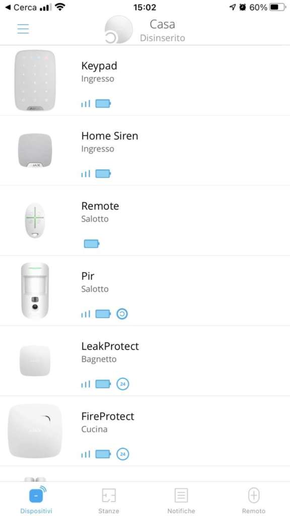 L’antifurto ci viene notificato direttamente nell’app, sotto forma di notifica arricchita di fotografie e informazioni utili a comprendere subito in quale zona della casa è stato attivato. Abbiamo installato inoltre una HomeSiren (81 euro), piccola sirena da interni capace di emettere un fischio fino a 105 dB; il suono è udibile in casa, non troppo forte da stordire, ma adeguato a dissuadere i malintenzionati ed allertare gli abitanti; posizionandola vicino alla camera da letto garantisce un risveglio rapido. Ajax Systems ha a catalogo anche sirene da esterno capaci di ben 113 dB di potenza e in grado di emettere luci lampeggianti per attirare meglio l’attenzione.