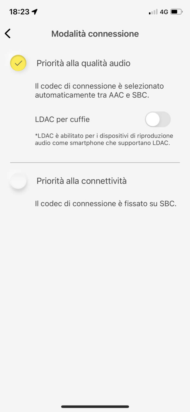 Molto più impattante è la scelta del codec Ldac (al posto di Aac), che fa scendere l’autonomia a circa 4,5 ore; in cambio si ottiene una maggiore qualità del flusso audio, a patto naturalmente che il dispositivo sorgente supporti questo standard. In ogni caso, è bene ricordarlo, tutti gli standard Bluetooth per la trasmissione audio applicano al segnale una compressione con perdita di informazione.