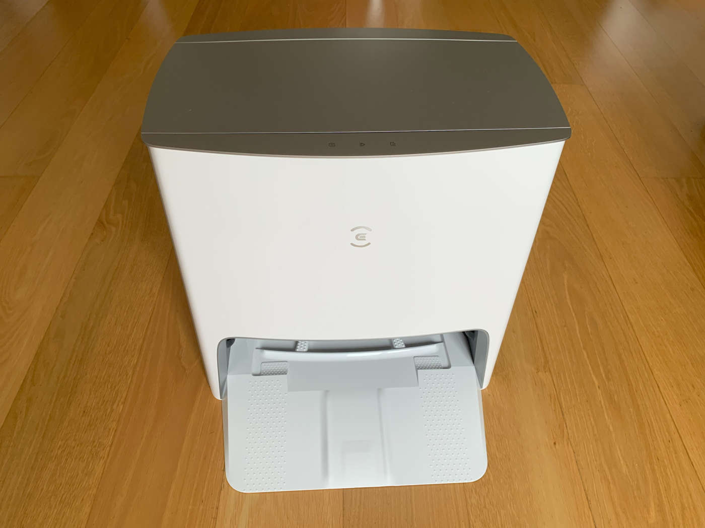 Le dock di grandi dimensioni per i robot di pulizia non sono una novità, ma le motivazioni di questa crescita variano tra un modello e l’altro: in questo caso, la base non consente di scaricare la polvere, ma invece è destinata quasi integralmente ad ospitare i due serbatoi per l’acqua pulita (eventualmente addizionata con un detergente) e quella sporca. Le dimensioni della base di ricarica sono quindi piuttosto ampie, e richiedono un angolo non proprio minuscolo in cui poterla collocare. Le istruzioni suggeriscono di lasciare uno spazio libero di almeno mezzo metro su ciascuno dei due lati, ma durante i nostri test abbiamo constatato come si possa rinunciare a questo requisito a patto che la zona frontale rimanga libera da ostacoli.