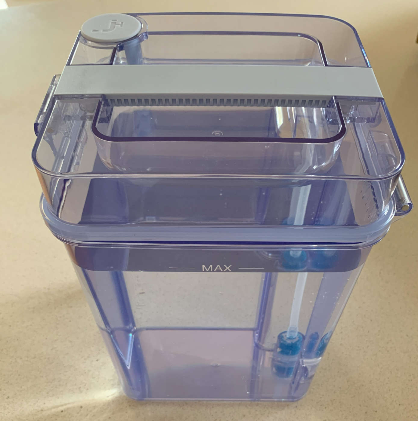 I serbatoi sono dotati di maniglie robuste e comode, e offrono un sistema di chiusura che ci è sembrato pratico ed efficace. Una volta chiuso il coperchio (che rimane sempre incernierato al fusto) i liquidi rimangono sigillati all’interno e si possono spostare i due serbatoi senza paura di sporcare o bagnare. L’unico, inevitabile difetto di questa soluzione è la necessità di una manutenzione piuttosto frequente. Durante i nostri test, in un appartamento di circa 95 mq, utilizzando le impostazioni standard è stato necessario intervenire per riempire il serbatoio dell’acqua pulita e svuotare quello dell’acqua sporca mediamente ogni due giorni. Il contenitore della polvere consente intervalli un po’ più lunghi (circa una settimana nel nostro caso), ma comunque le grandi dimensioni della base di ricarica non si traducono in una riduzione della frequenza delle operazioni di svuotamento.