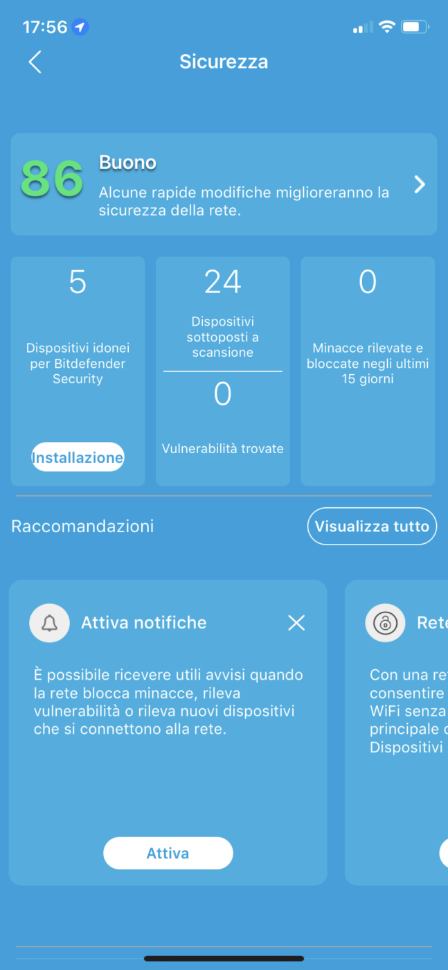 Le funzionalità di sicurezza sono integrate nell’app di Orbi insieme a quelle di gestione, in modo da avere sotto controllo tutto con un solo accesso. L’app mostra una valutazione sempre aggiornata del grado di sicurezza della propria rete, esaminando le potenziali vulnerabilità di ogni nuovo oggetto che prova a connettervisi e suggerendo azioni pensate per migliorare il grado di protezione generale della casa.