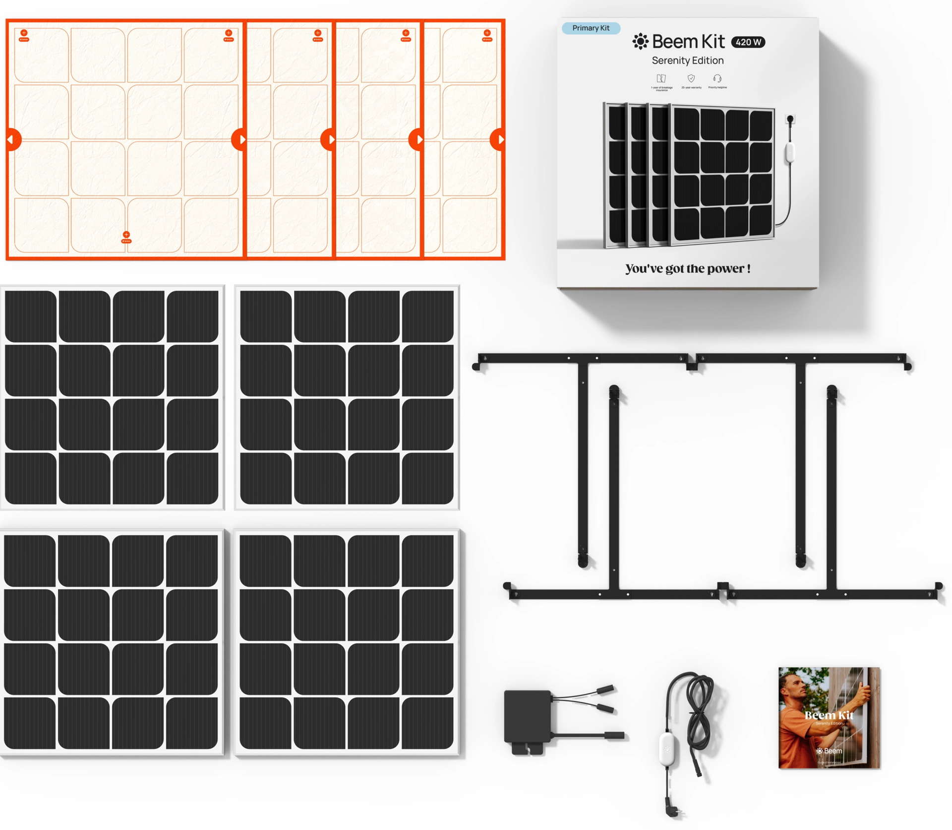 Il Beem Kit 420W Serenity Edition comprende tutto il necessario per assemblare, installare e avviare un mini impianto fotovoltaico in pochi e semplici passi, senza richiedere autorizzazioni né il supporto tecnico di un elettricista. È garantito 25 anni a conferma della sua resistenza e affidabilità a lungo termine (80% della potenza nominale).