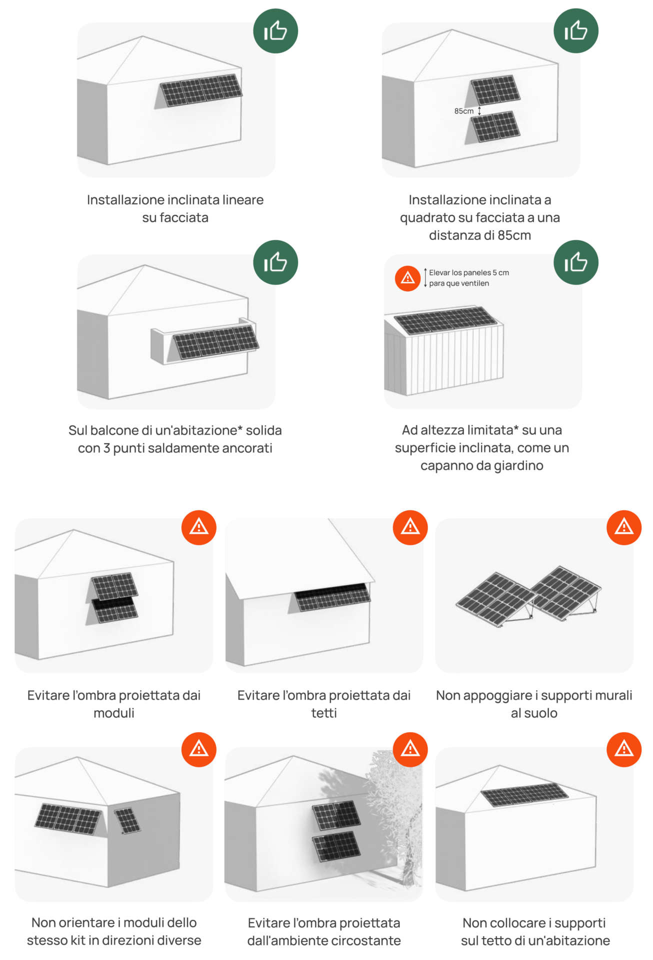Sono previste due diverse tipologie di posizionamento da scegliere in fase di acquisto: a terra per terrazzi, giardini, lastrici solari e cortili oppure a parete per facciate, ringhiere di balconi, muri divisori, ecc.