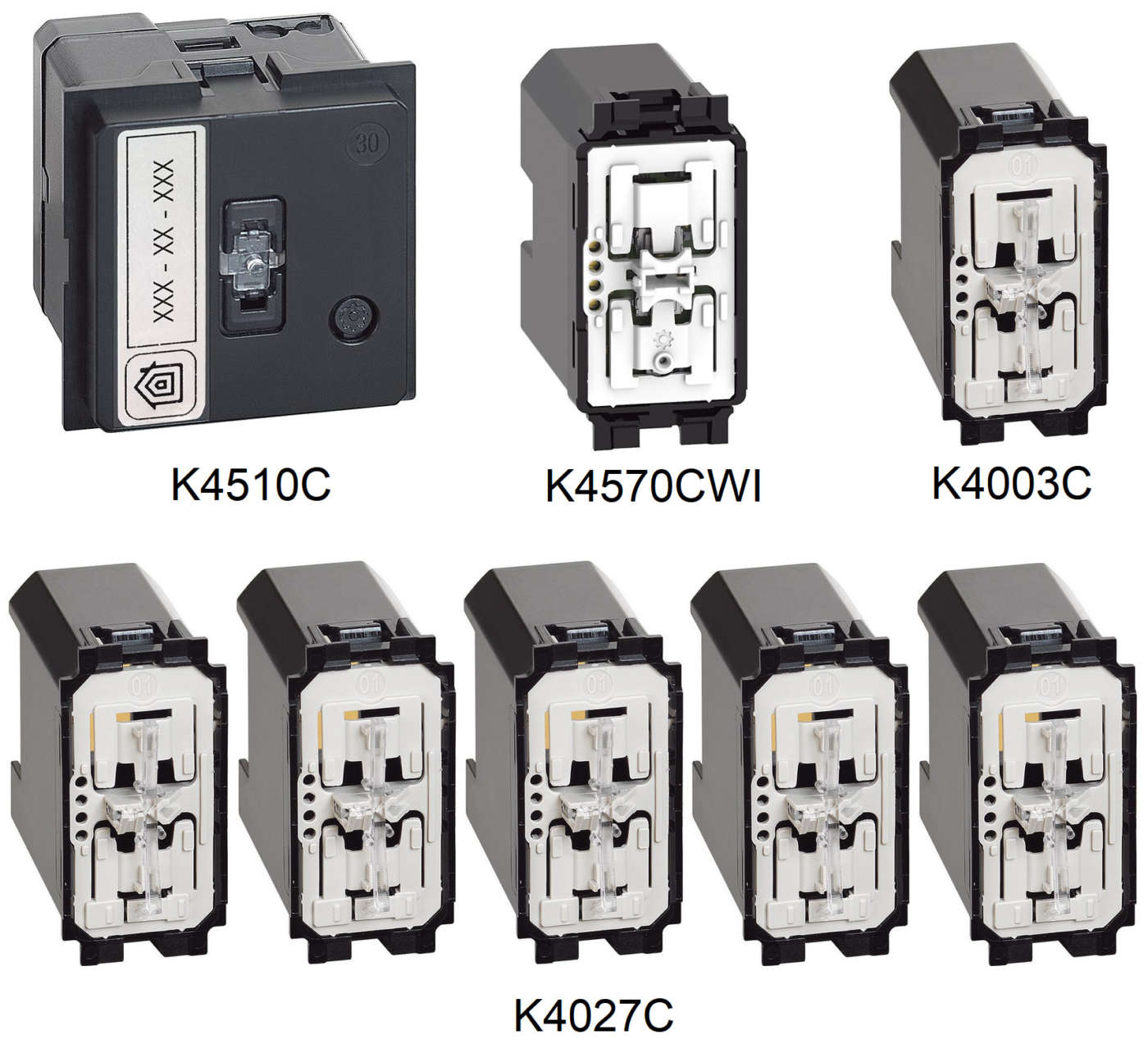 Nel kit troviamo ben cinque moduli smart K4027C per comandare altrettante tapparelle elettriche (cioè già dotate di motore per sollevamento e abbassamento) da collegare al posto dei vecchi pulsanti/interruttori elettromeccanici oppure alle centraline esterne già presenti con telecomando radio.