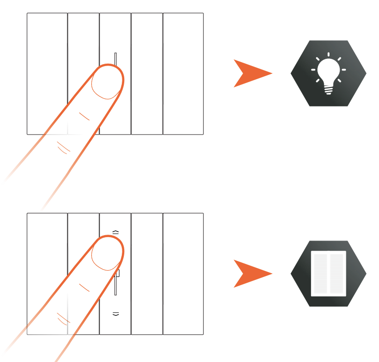 Dopo aver collegato il gateway e i moduli connessi come indicato negli schemi sopra è possibile fin da subito comandare le tapparelle e le luci toccando i pulsanti integrati.