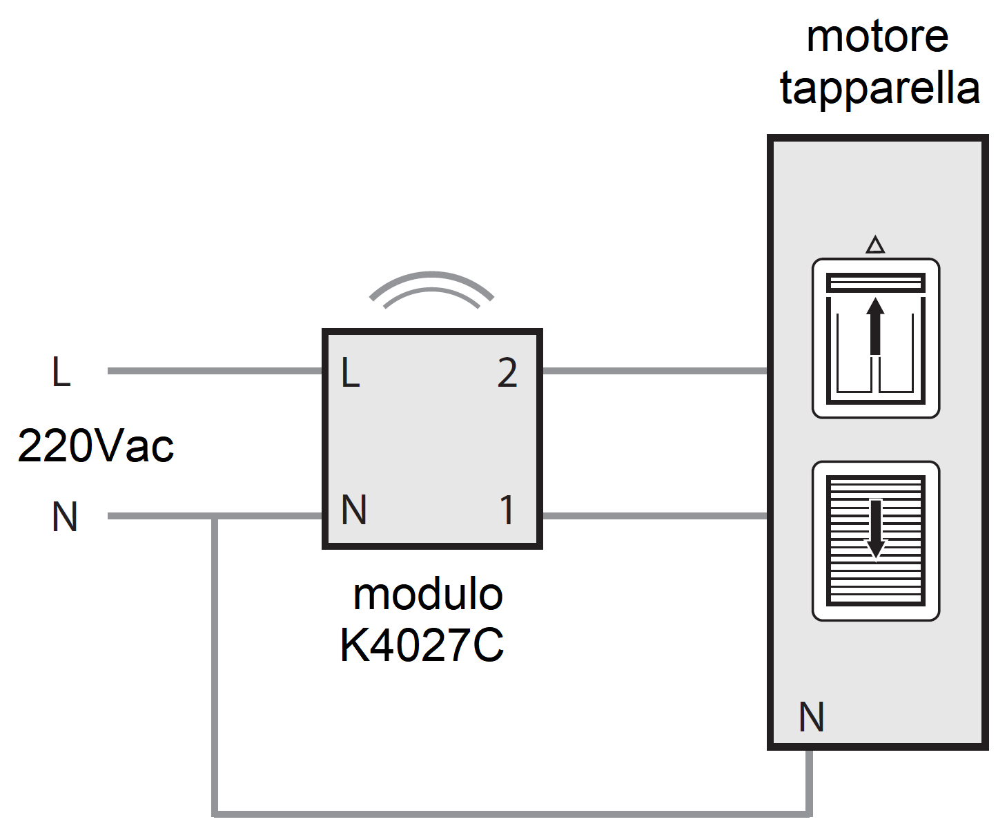 È bene sottolineare che il modulo K4027C (così come tutti i moduli smart per tapparelle) non è compatibile né con i motori ad impulsi né con quelli dotati di scheda radio integrata per un telecomando esterno. Per scaricare le schede tecniche con la procedura di installazione e collegamento cliccate qui e qui.