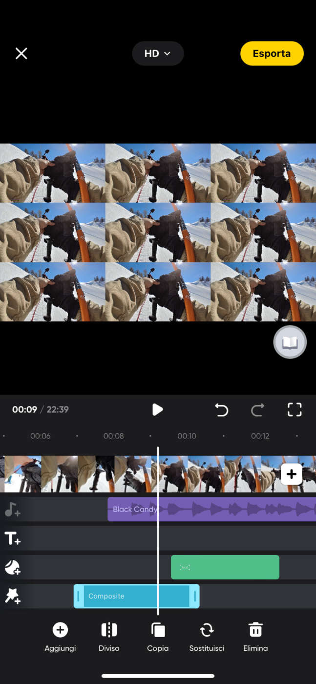 La GO 3 trova il compendio perfetto nell’app Insta360, disponibile gratuitamente per iOS e Android. Questa app, capace di gestire le diverse telecamere dell’azienda cinese, permette di scaricare i contenuti video e foto nella memoria del telefono e di gestire remotamente la telecamera. Il suo utilizzo però più interessante consiste nella capacità di montare i video girati, tagliandoli, mettendoli in sequenza e aggiungendo musica, adesivi e titoli animati, per poi esportare il prodotto finale come video o addirittura in formato adatto alla condivisione in storie, già tagliato in diversi segmenti brevi.