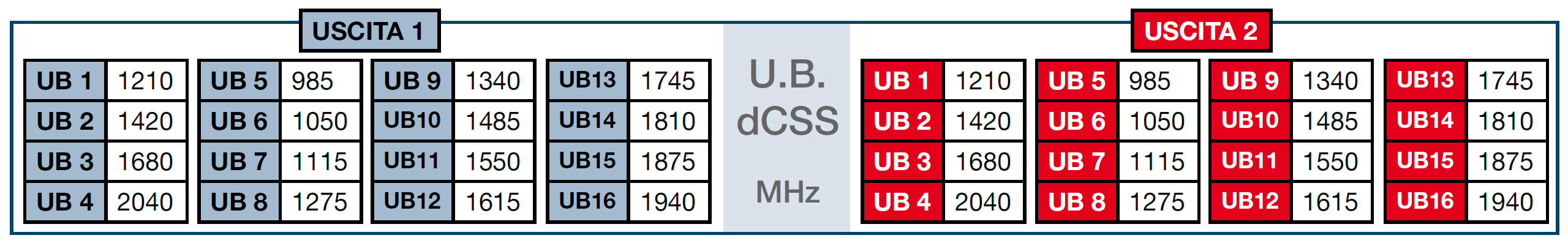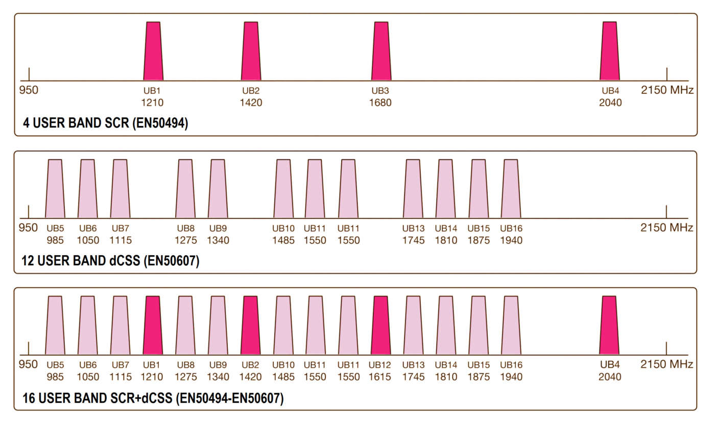 Mentre il vecchio SCR supporta fino a 8 user band (Tv 1, Tv 2, decoder 1, decoder 2, ecc.) per ogni uscita fisica, nel dCSS si arriva addirittura a 32 di cui 24 in esclusiva e 8 condivise con l’SCR (che il dCSS supporta retroattivamente).