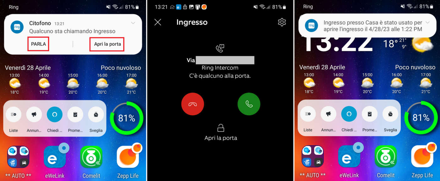 + Notifiche, comunicazioni vivavoce e apriporta su app Ring (Android/iOS/FireOS)