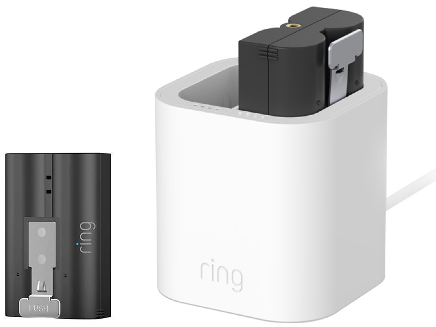 Per annullare i tempi di inattività causati dalla ricarica della batteria potete acquistare un secondo pacco batteria a sgancio rapido (lo stesso di altri dispositivi Ring) e la stazione di ricarica esterna al costo di 29,99 euro cad., sul sito Ring oppure su Amazon.