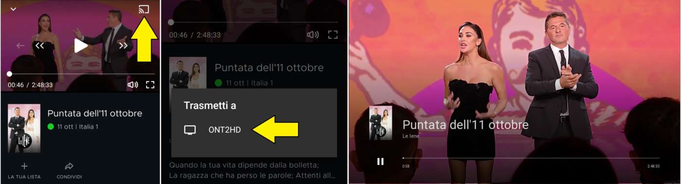 ON T2 HD supporta anche la tecnologia Google Cast per la gestione dei contenuti audio/video e le schermate delle app inviate in streaming dai dispositivi compatibili (anche PC desktop e laptop). In sostanza si possono replicare le funzioni di un dongle Chromecast per lo streaming di queste app ma anche di foto, musica, video e altri contenuti salvati su PC, smartphone, tablet, ecc.