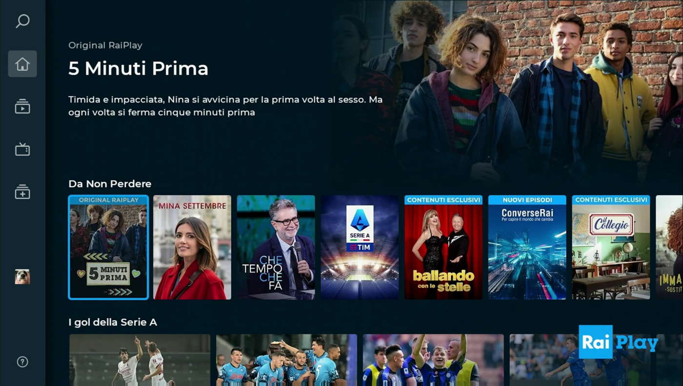 Più in basso troviamo una panoramica dei contenuti delle app e dei canali principali (consigliati e in onda prossimamente), selezionabili con un semplice click senza bisogno di accedere alla piattaforma da cui trasmettono.