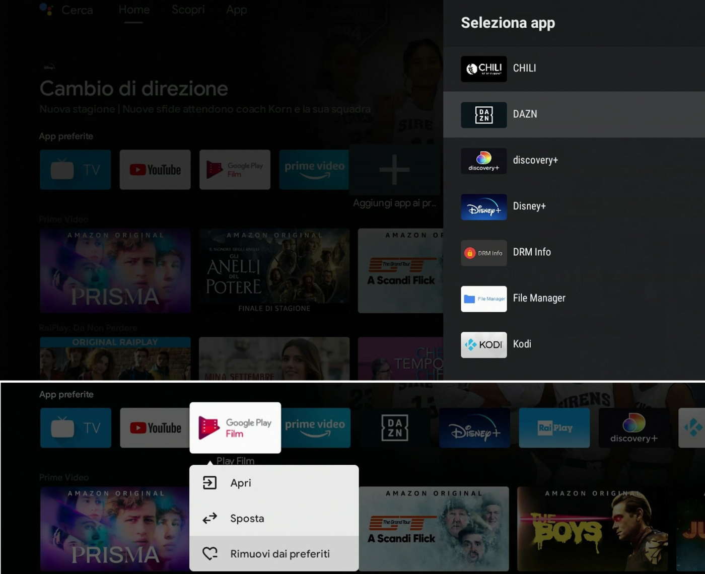 Cliccando su Personalizza canali in fondo alla Home Screen si può modificare a piacimento l’ordine e la tipologia di contenuti di ogni singolo canale così da adattarlo ai propri gusti. Anche il layout delle sezioni principali e dei relativi contenuti è personalizzabile: le sezioni possono essere spostate in alto, in basso o cancellate, l’elenco delle app preferite “costruito” su misura (spostamento, aggiunta o eliminazione) e i contenuti rimossi in modo veloce e intuitivo.