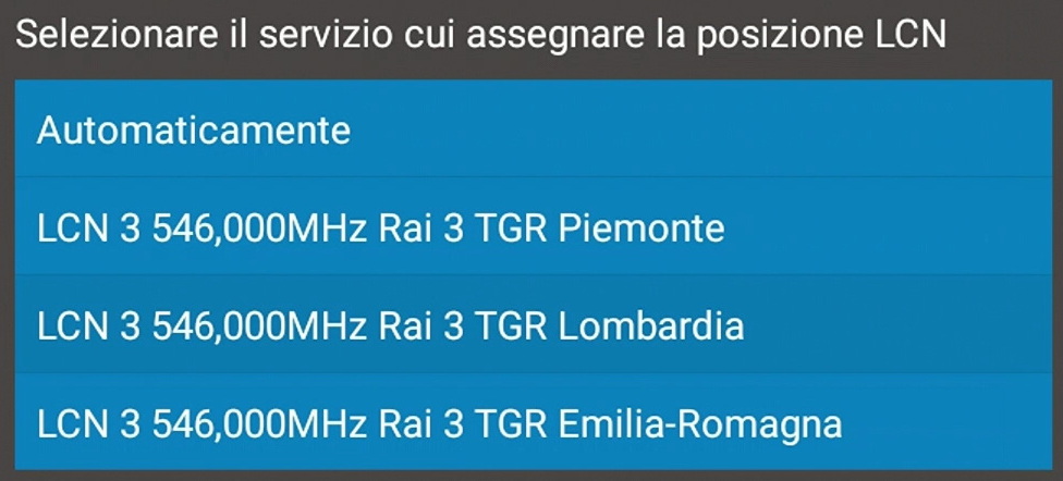 Terminata la scansione, che esamina frequenza per frequenza le bande VHF e UHF con il supporto delle barre di qualità/livello del segnale e mostra i canali Tv/radio trovati, bisogna risolvere i conflitti LCN (stessa numerazione per due o più canali). L’operazione è semplice: basta scegliere manualmente il canale (es.: Rai 3 Lombardia nella posizione 3 al posto delle altre versioni regionali) oppure aspettare qualche secondo per la risoluzione automatica.