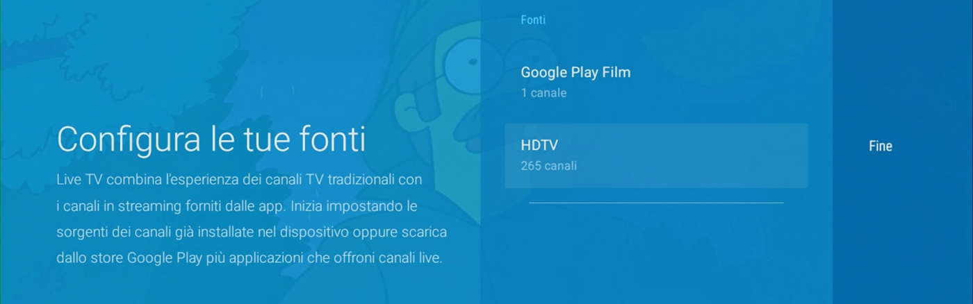 Sempre dal sottomenu Fonti Canali è possibile includere nell’elenco Live TV anche altri contenuti “non DTT” come quelli di Google Play Film (trailer) e i video di VLC (mediaplayer).