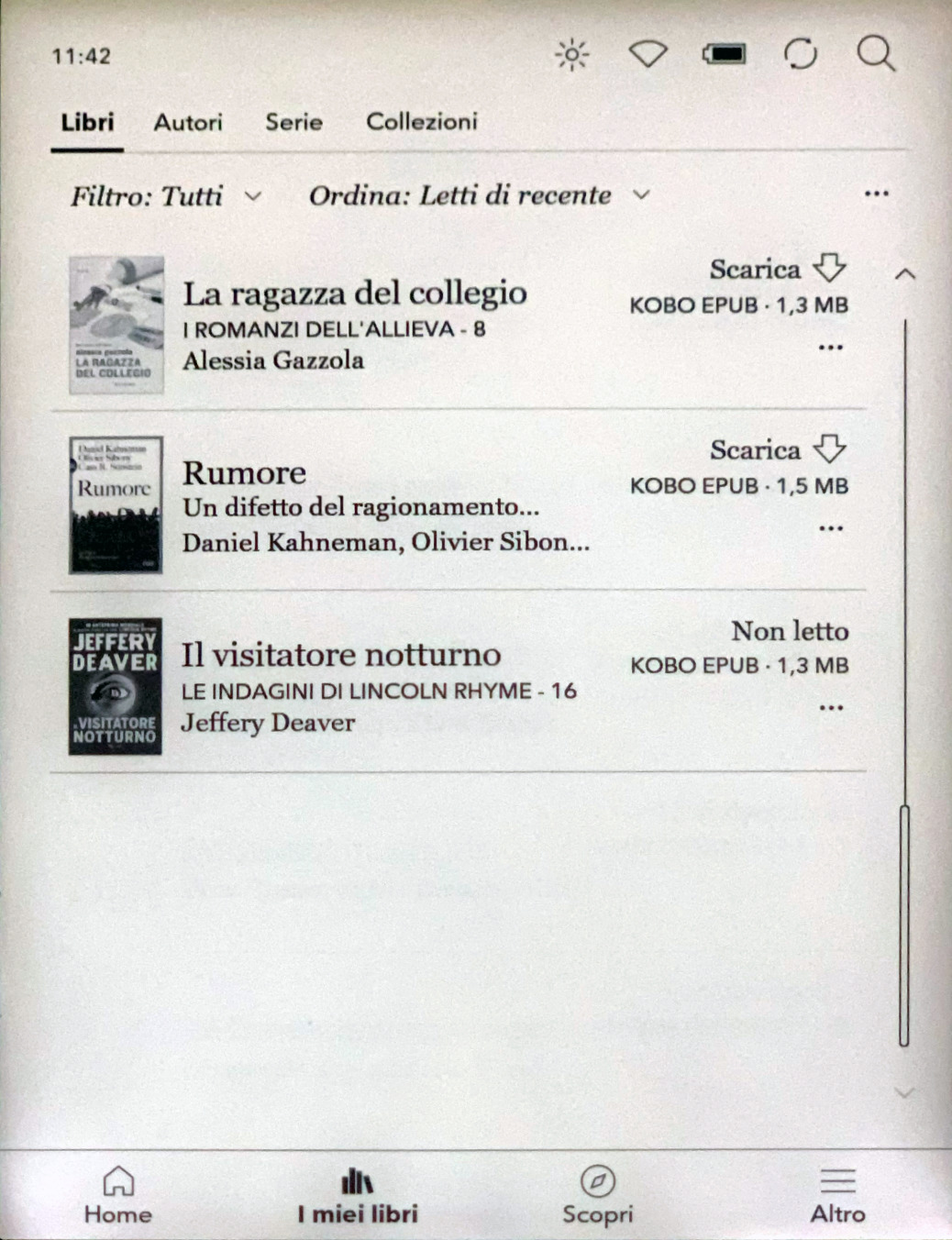 La sezione Scopri, infine, integra le funzioni dello store, con un catalogo di 5 milioni di libri elettronici, suggerimenti personalizzati, offerte speciali, una classifica Top 50 e diverse raccolte tematiche.