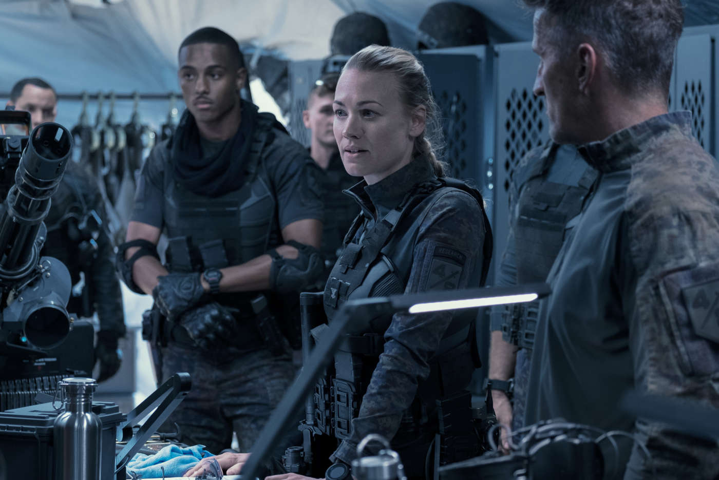 In The Tomorrow War il mondo rimane sotto shock quando un gruppo di viaggiatori nel tempo arriva dal 2051 per portare un messaggio urgente: di lì a trent’anni la razza umana sarà sul punto di perdere una guerra globale contro una letale specie aliena. L’unica speranza per sopravvivere è che soldati e civili del presente vengano trasportati nel futuro e si uniscano alla battaglia. Tra le reclute c’è l’insegnate di liceo e padre di famiglia Dan Forester (Pratt). Determinato a salvare il mondo per la sua giovane figlia, Dan si unisce a una brillante scienziata (Yvonne Strahovski) e al padre da cui si era allontanato (J.K. Simmons) nella disperata impresa di riscrivere il destino del pianeta.