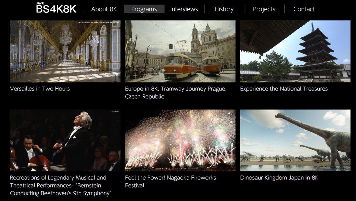 In Giappone, invece, è già attivo da tempo il canale satellitare BS8K del broadcaster pubblico NHK che trasmette film, documentari ed eventi sportivi.
