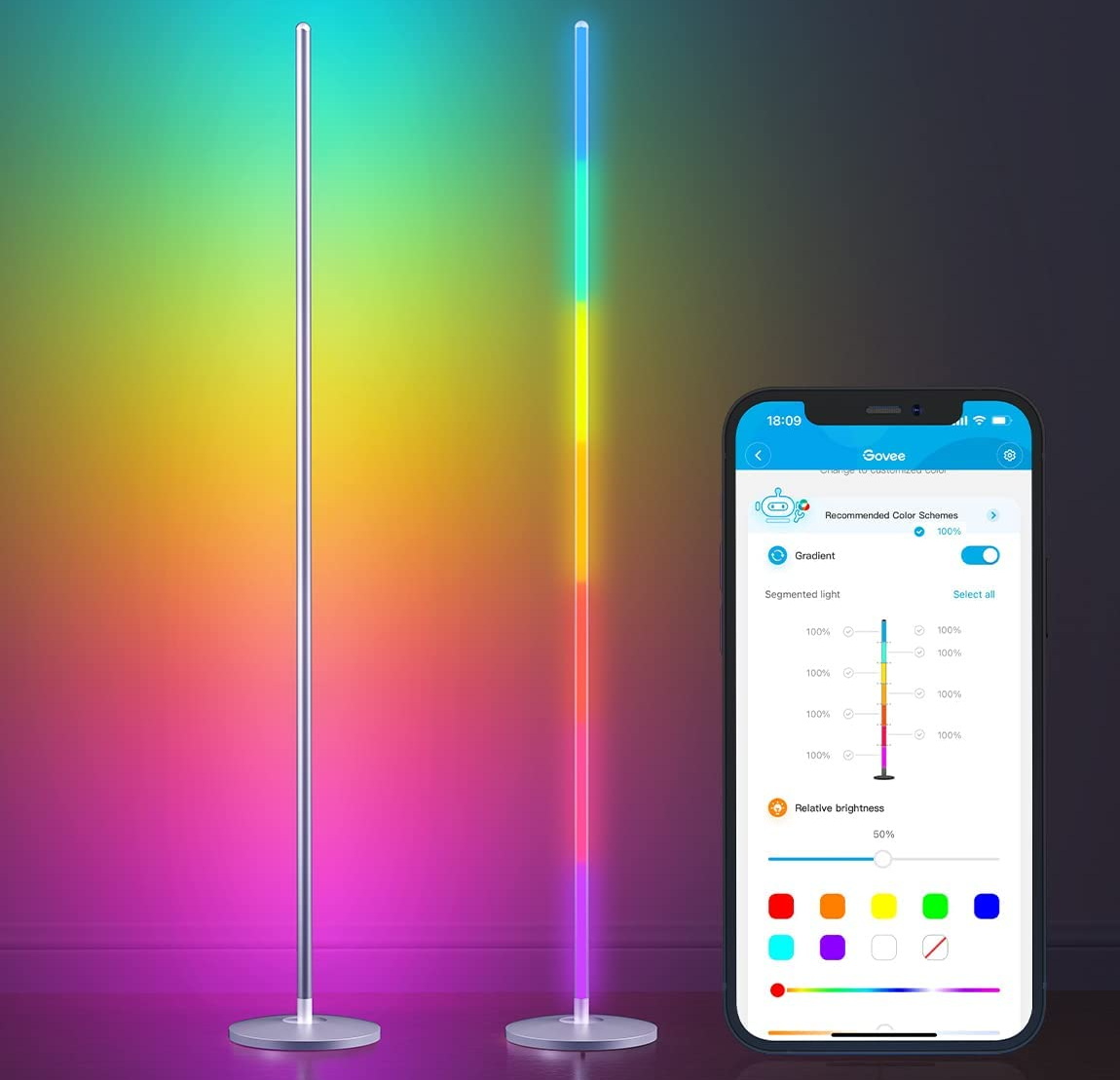 Esistono anche lampade smart da pavimento, sottili ed eleganti per rimpiazzare o affiancare la vecchia piantana alogena/led, ridurre i consumi energetici e migliorare il comfort in salotto e in camera da letto.