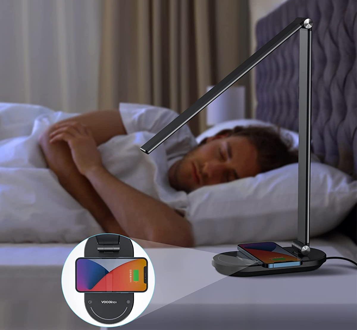 Alcune lampade smart led da scrivania o tavolo integrano un caricatore wireless a induzione per smartphone, smartwatch e auricolari Bluetooth, così da mantenere sempre carica la batteria anche mentre si sta lavorando, studiando o dormendo e senza bisogno collegare il cavo USB.