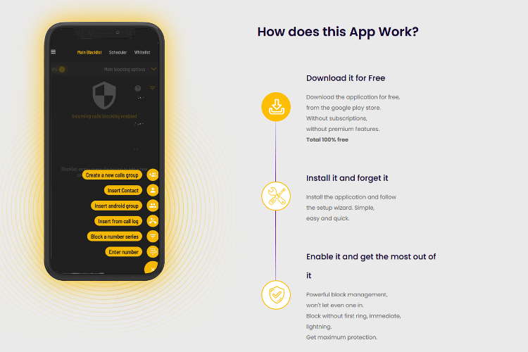 Come ispira il nome, buona parte delle funzioni ruota intorno alla lista nera. Oltre ai numeri indicati manualmente, si può contare anche sul sistema in grado di negare la linea anche a numeri anonimi, sconosciuti e perfino quelli particolarmente fastidiosi di chiamate effettuate da sistemi robotici.