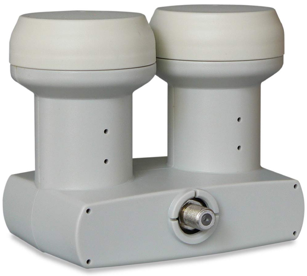L’LNB Twin si comporta esattamente come due LNB universali “singoli” (vedi sopra) in un solo “corpo”. Le due uscite si collegano ad altrettanti Tv/decoder DVB-S/S2 presenti in casa (ad esempio il primo in salotto e il secondo in camera da letto) con la possibilità di guardare canali diversi in entrambe le stanze, anche simultaneamente. Questa soluzione richiede due cavi coassiali che partono dall’LNB e arrivano direttamente nelle due stanze.
