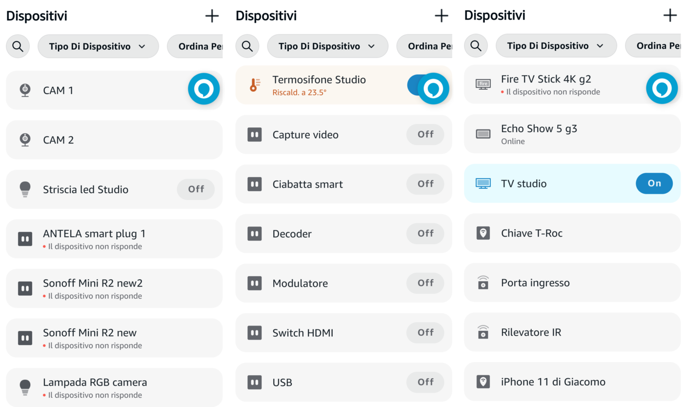 La scelta è praticamente illimitata: basta che la app che gestisce questi dispositivi sia compatibile con Alexa e che, dopo l’associazione degli account (app proprietaria e Amazon), gli stessi device vengano rilevati da Alexa ed elencati nel menu dispositivi.