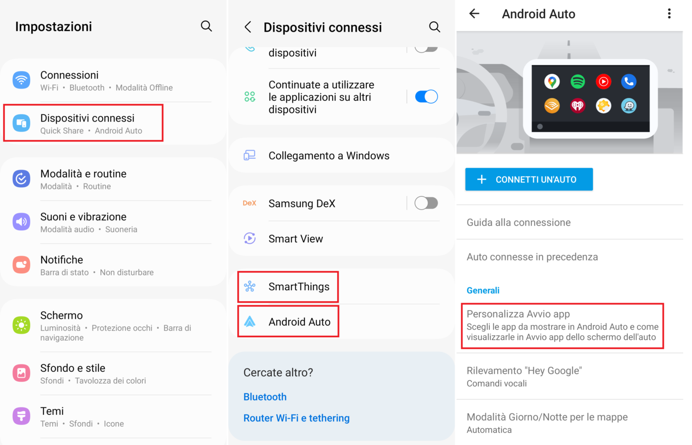 Verificate che i dispositivi selezionati appaiano nella schermata Android Auto della app SmartThings e, in caso di errori, ripetete da capo la procedura.