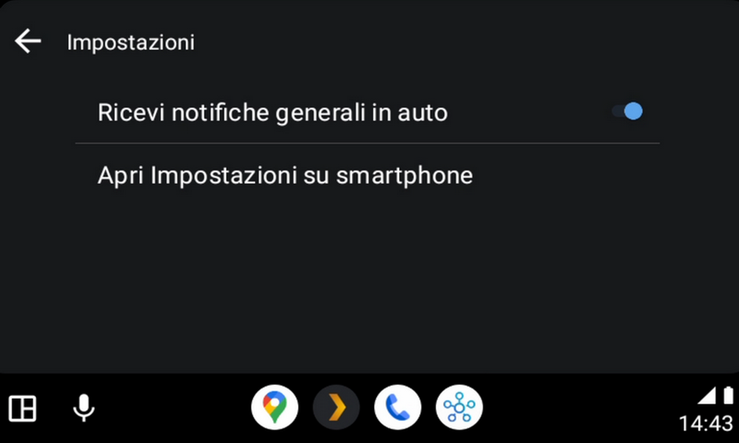 L’icona ingranaggio in alto a destra conduce alle impostazioni di SmartThings di Android Auto come la ricezione delle notifiche sull’infotainment e la scorciatoia per l’accesso alla pagina Android Auto della app SmartThings (sullo smartphone) per modificare i dispositivi da controllare (vedi sopra).