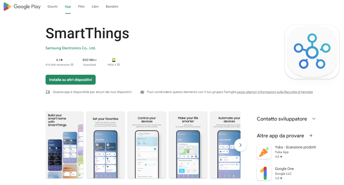 Si chiama SmartThings ed è stata concepita da Samsung come “controller universale” per gestire tantissimi dispositivi smart multimarca con smartphone, tablet, smartwatch e infotainment, attraverso una sola app e con i comandi concentrati in una sola schermata.