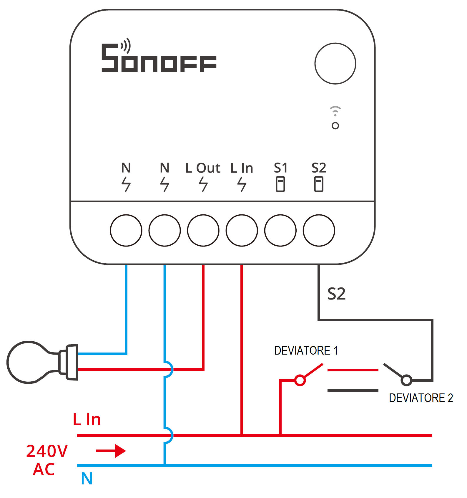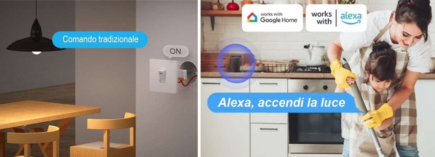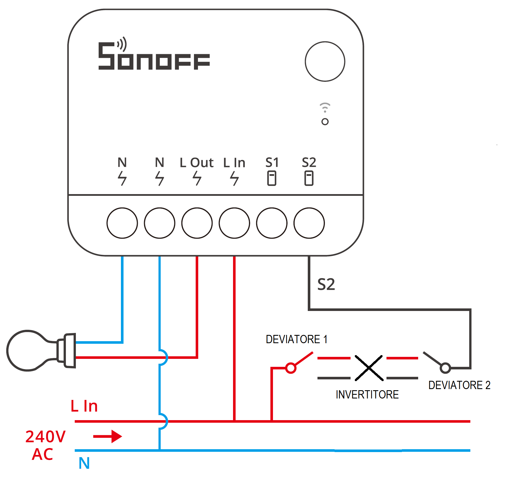 Lo ZBMINI-L2 offre un ulteriore vantaggio: per alimentarlo basta il solo cavo di fase 220Vac (non serve il neutro) che è già presente nella scatola elettrica che ospita l’interruttore elettromeccanico per comandare la luce. Questo significa che non bisogna aggiungere altri cavi né mettere mano all’impianto elettrico così da facilitare e velocizzare l’installazione fai-de-te (no elettricista).