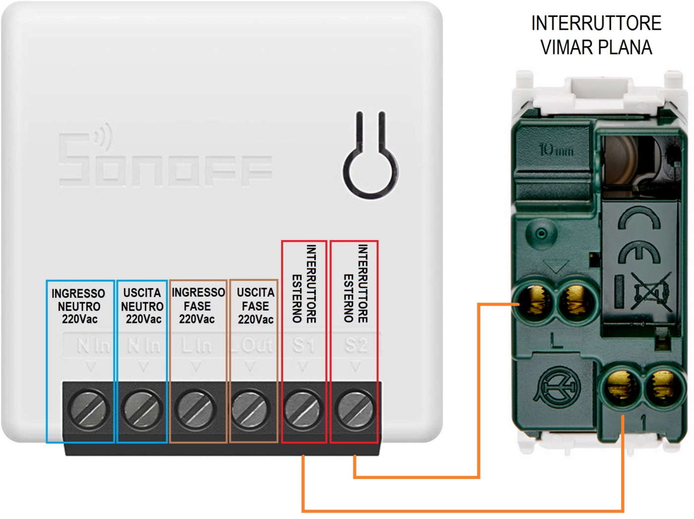Dovete infatti scegliere solo quei modelli dotati di morsetti di ingresso identificati come S1 e S2 (dove S sta per “switch” – commutatore) come i Sonoff MINI R2, MINI R3 (con modulo aggiuntivo S-Mate2), ZBMINI, ZBMini-L2, MINI R4 e MINI R4M.