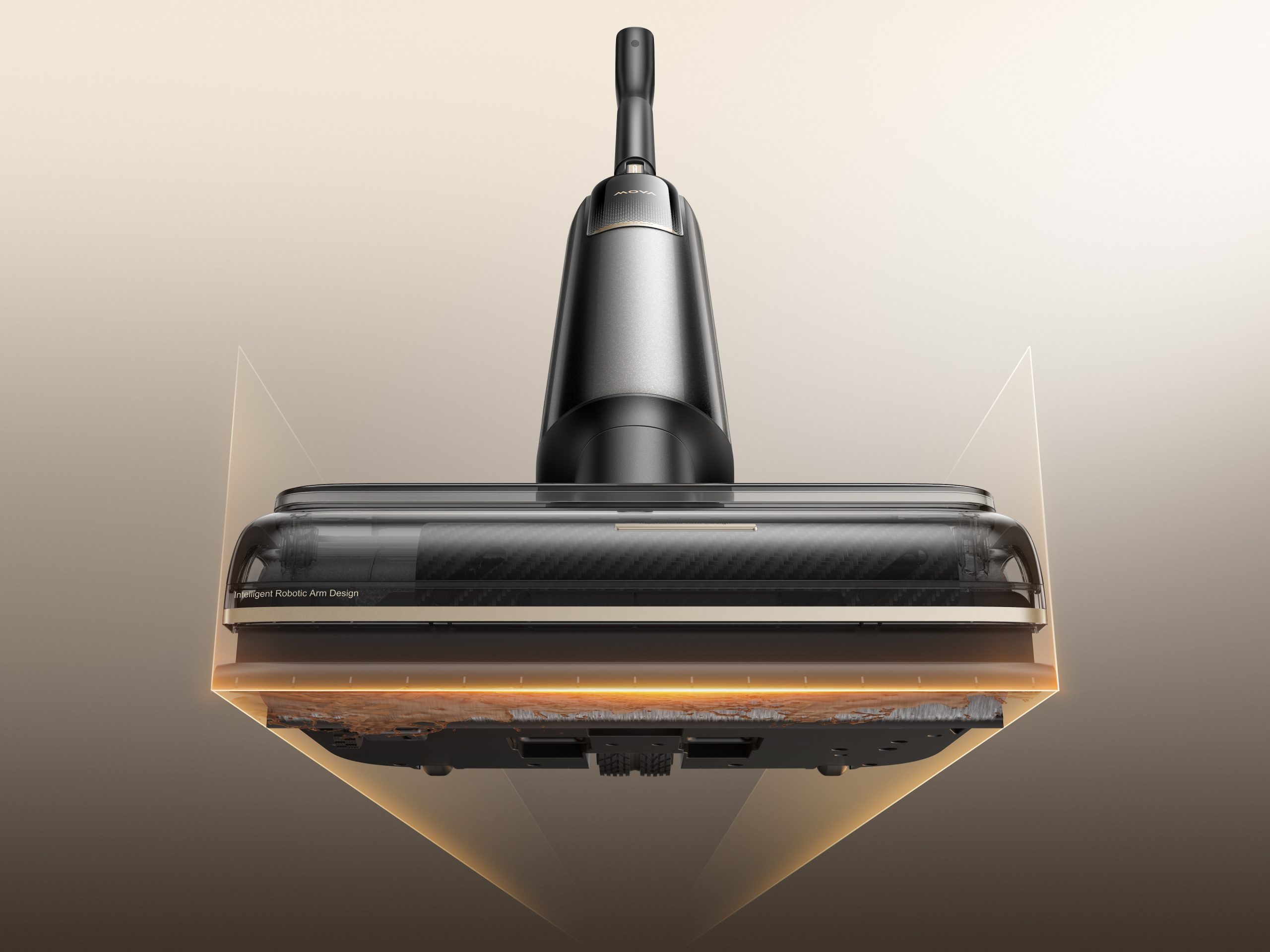 L’approccio di Mova è chiaramente orientato all’ergonomia. Il manico regolabile in altezza e pieghevole è una delle scelte più riuscite del progetto: grazie a una cerniera magnetica con blocco progressivo, può inclinarsi fino a 90 gradi mantenendo la stabilità e la trazione del rullo anche in posizione orizzontale.