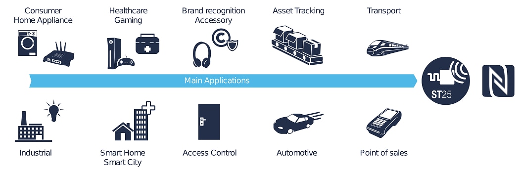 L’NFC spazia a 360° su vari ambiti applicativi come elettronica di consumo, salute, gaming, trasporti, smart home, smart city, POS, controllo accessi e automotive.