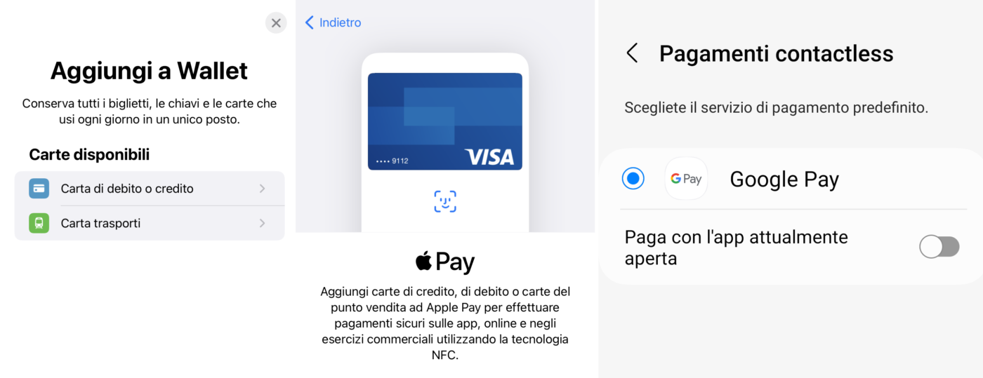 Registrazione delle carte di pagamento su iOS (a sinistra) e Android (a destra)