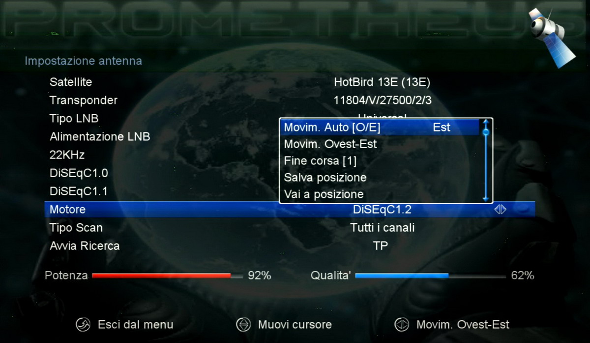 Il motore monocavo, così come gli altri, assicura la ricezione dei soli satelliti e canali che hanno una potenza al suolo compatibile con il diametro della parabola utilizzata.