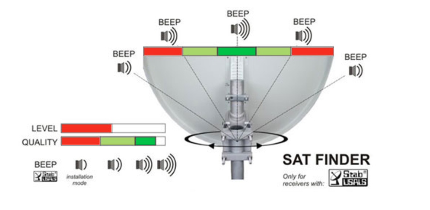 Alcuni modelli della gamma Stab come l’HH120 e l’HH100 integrano un sat-finder, ovvero un sistema di ricerca del satellite che facilita le operazioni di puntamento. Il segnale acustico emesso dal sat-finder ha 4 diverse intensità che identificano la modalità di puntamento del rotore (1° livello), l’agganciamento del segnale del satellite selezionato (2°), una qualità del segnale tra il 70% ed il 90% (3°) e una qualità superiore al 90% (4°).