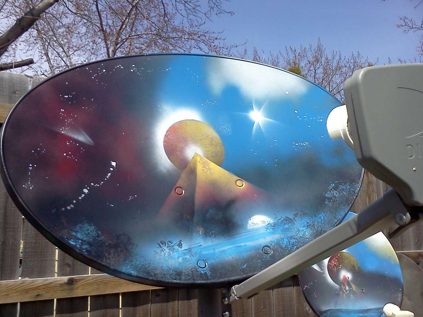 La vernice spray lucida è tollerata ma sconsigliata perché tende a riflettere troppo i raggi solari verso il tappo dell’LNB che ne accelerano l’invecchiamento.