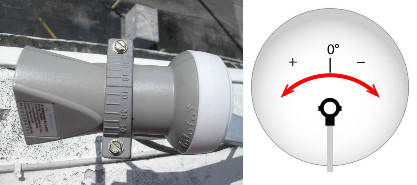 L’angolo di Skew, termine anglosassone che significa “storto”, è quel parametro riportato sul collare dove si fissa l’LNB (-3, -2, -1, 0, +1, +2, +3, ecc.). Permette all’LNB di mantenere la corretta perpendicolarità rispetto alla parabola e garantire così la perfetta ricezione dei segnali con polarità orizzontale e verticale indipendentemente dalla posizione orbitale dei satelliti. Quando ci si sposta manualmente verso est oppure ovest, per garantire prestazioni ottimali del sistema di ricezione si dovrebbe ruotare l’LNB sul suo collare di alcuni gradi in senso orario oppure antiorario. L’angolo di Skew va calcolato e impostato manualmente per le parabole fisse mentre in quelle motorizzate viene già calcolato ed applicato automaticamente dal polarmount, ovvero il supporto polare che fa ruotare la parabola lungo la Fascia di Clarke facendola inclinare agli estremi est-ovest.