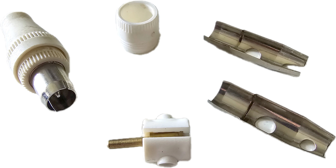 Il connettore F di tipo “maschio” è costituito da un cilindro cavo che accoglie il cavo coassiale e da una ghiera circolare da avvitare sul corrispondente connettore F di tipo “femmina”.