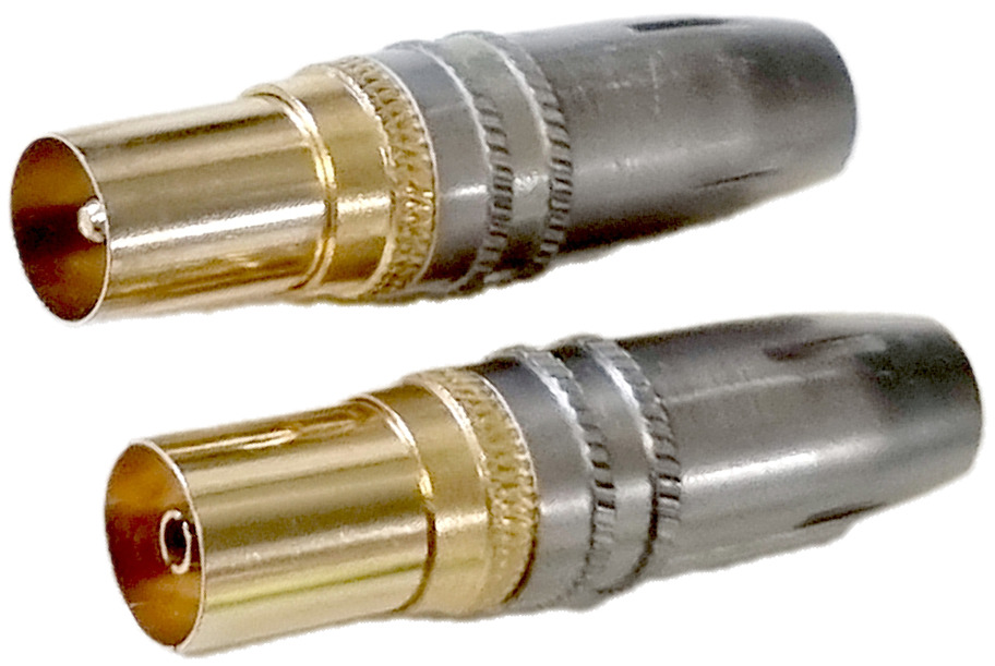 Nelle prolunghe tra la presa a muro DTT e il televisore (o decoder DVB-T/T2 esterno) si utilizzano invece i connettori di tipo “IEC” (maschio/femmina).
