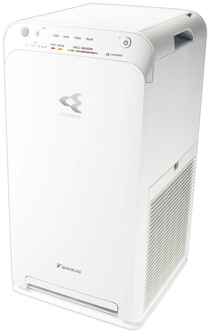 Purificatore d’aria da pavimento dotato di filtro HEPA autorigenerante con durata fino a 10 anni (per ridurre sensibilmente i costi di manutenzione) e sistema deodorizzate con elettroni (Flash Streamer + catalizzatore) che attiva le reazioni chimiche con le particelle sospese in aria, decomponendo gli allergeni (pollini e funghi) e rimuovendo gli odori (sistema Daikin Catch & Clean).