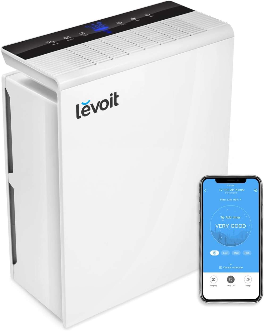 - Note: controllo da app VeSync e vocale (Alexa/Google), timer e scenari, controllo stato filtro da app, Sleep Mode, livello rumore 27-52 dB