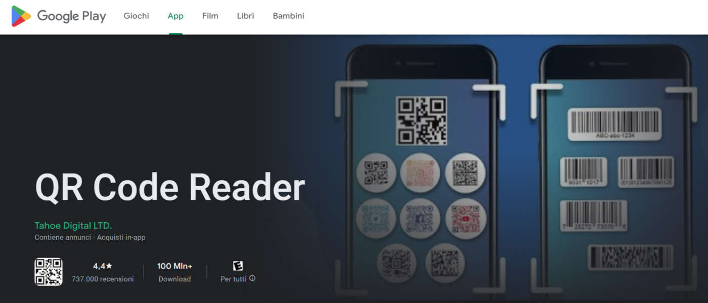 App QR Code Reader per dispositivi Android
