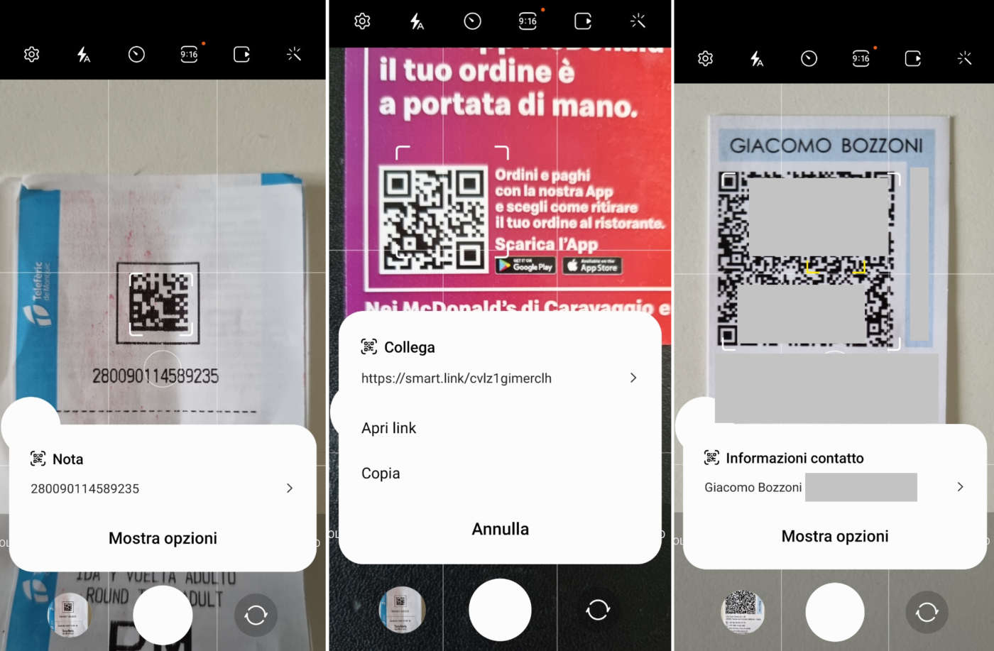 Scansione QR Code con smartphone Android (app fotocamera nativa)