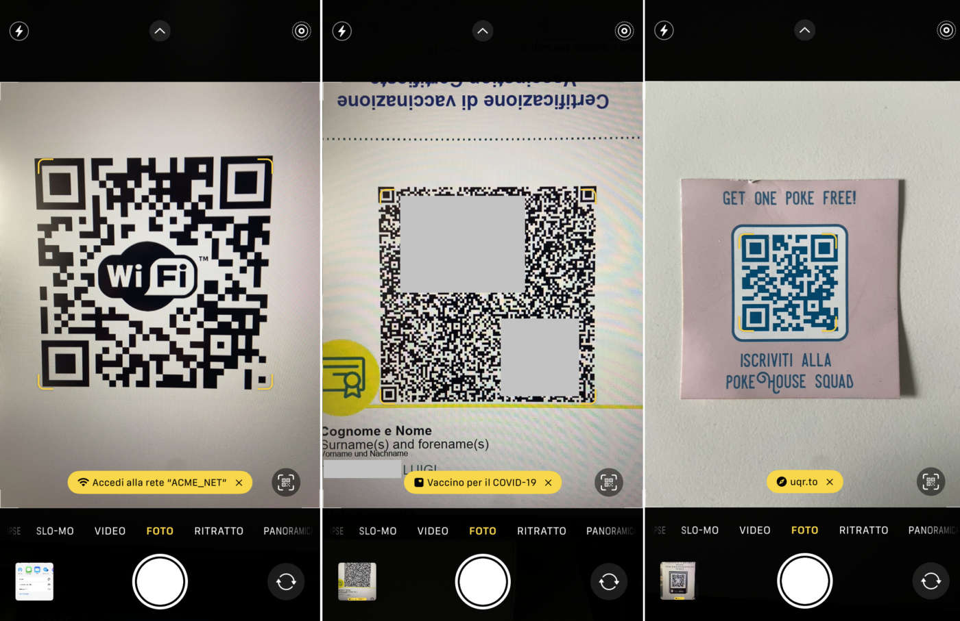 Scansione QR Code con iPhone (app fotocamera nativa)